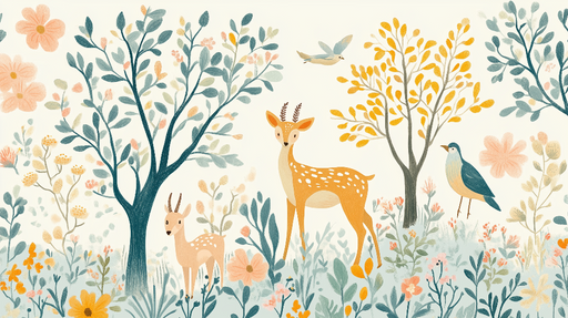 Visa fullständiga detaljerTapet fauna och flora | Bucolisk scen med rådjur och fåglar