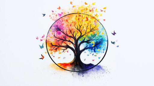 WonderMuralUpptäck vår magnifika tapet med en färgstarkt träd omgivet av akvarellfåglar, där varje löv vecklar ut sig i en palett av levande färger. Denna kon...