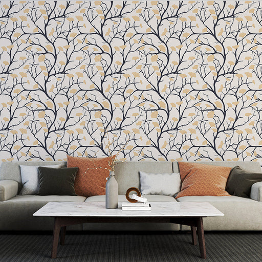 WonderMuralDenna tapet har ett delikat mönster av svarta grenar smyckade med guldiga löv, vilket väcker en mjuk och naturlig stämning. Kombinationen av färger...