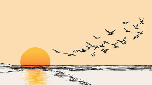 WonderMuralDenna fototapet har en stiliserad solnedgång med en majestätisk orange sol, omgiven av silhuetter av fåglar i flykt. De rena linjerna hos fåglarna ...