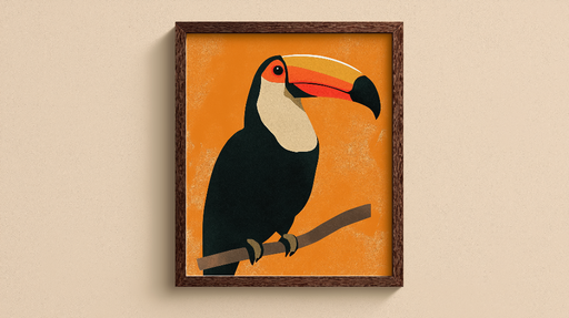 WonderMuralDenna fototapet har ett charmigt stiliserat tukanmönster i ljusa färger, perfekt integrerat i en tropisk atmosfär. Den ljusa orange bakgrunden fram...