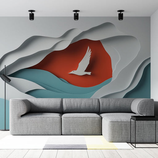WonderMuralDenna magnifika tapet väcker harmonin i naturen med en präglad design som framhäver en fågel i flykt på en bakgrund av stiliserade vågor. De mjuka ...