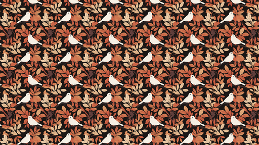 WonderMuralDenna tapet har ett charmigt mönster av löv i höstfärger och vita fåglar fint integrerade. De varma färgerna, som sträcker sig från orange till bei...