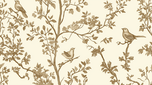 WonderMuralDenna magnifika shabby chic-tapet har ett elegant mönster av fåglar som sitter på delikata grenar, omgivna av fina bladverk, allt i nyanser av beig...