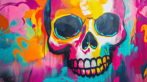 WonderMuralFärgglad Skalle i Graffiti Denna djärva tapet har en stiliserad, livlig och detaljerad skalle, insvept i en explosion av neonfärger som verkar flyt...
