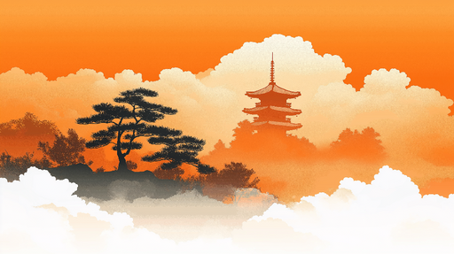WonderMuralUpptäck vår Fototapet Asiatisk landskap, som illustrerar en scen fylld med lugn med konstnärligt stiliserade tallsilhuetter och en delikat pagod, a...