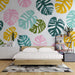 Fototapet monstera | Pastellgul rosa gröna och blå monstera blad