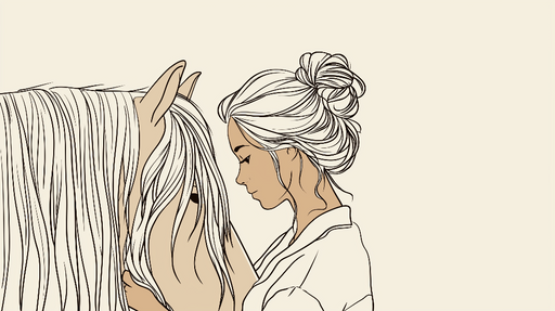 Visa fullständiga detaljerFototapet kvinna och häst | Minimalistisk illustration av en mild kvinna med sin häst