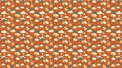 WonderMuralDenna tapet har ett charmigt mönster av moln och stiliserade solar på en varm rostfärgad bakgrund. Pastellfärger som sträcker sig från gul till grö...