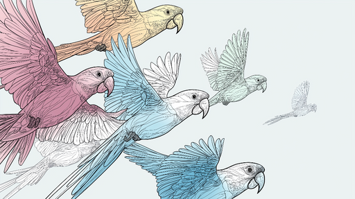 Visa fullständiga detaljerFototapet fåglar i flykt | Papegojor som flyger i en ljus himmel