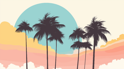 WonderMuralDenna livfulla tapet framhäver prächtiga palmträds silhuetter mot en mjuk bakgrund av pastellfärger. De varma färgerna, som sträcker sig från rosa ...