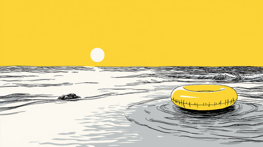 WonderMuralDenna tapet framkallar en sommar- och avslappnad atmosfär med en gul boj som flyter på ett lugnt hav, under en ljusgul solig himmel. Det linjära oc...