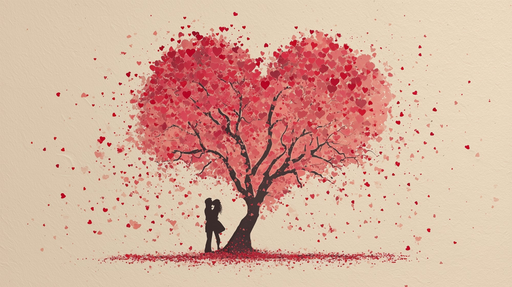 Art'loloDenna Fototapet romantik fångar känslan av kärlek med ett majestätiskt träd i form av ett hjärta. De röda hjärtformade löven skapar en mjuk och pas...