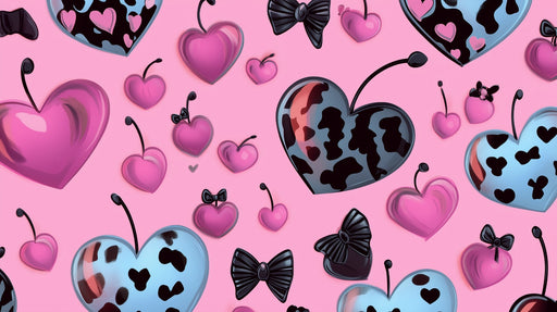 Art'loloLägg till en touch av fantasi till ditt inre med vår Fototapet med hjärt- och körsbärsmönster på en livlig rosa bakgrund. De mångfärgade hjärtana o...