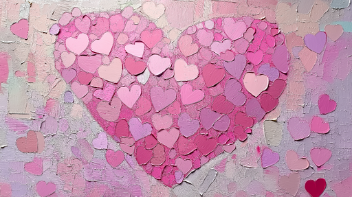 WonderMuralDenna charmiga tapet har ett stort centralt hjärta bestående av små hjärtformer, alla i olika nyanser av rosa, från pastell till fuchsia. De prägla...