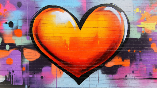 WonderMuralDenna gatukonst-stil illustration har ett levande och ljust hjärta, dominerat av orange och röda toner, som sticker ut mot en ljus bakgrund med ins...