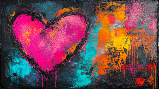 WonderMuralDenna moderna tapetmålning har ett livfullt fuchsia-hjärta, målat i graffitistil på en rikt texturerad bakgrund. Stänk av gult, orange och turkosbl...