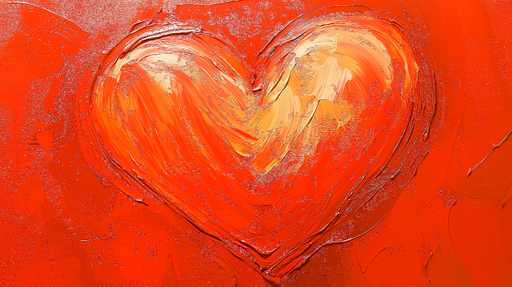 WonderMuralDenna djärva tapet visar ett livfullt hjärta i tjocka penseldrag på en duk av intensiv röd. De orange och gula nyanserna i mitten av formen lägger ...