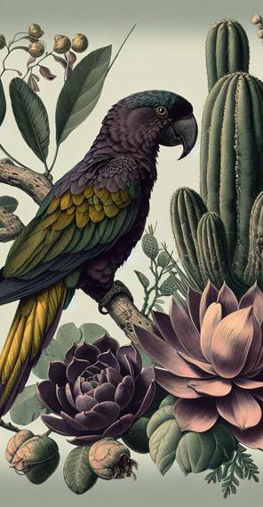 Visa fullständiga detaljerDark Parrot Fototapet | Cactus Hamlet och Lövverk