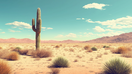WonderMuralDenna tapet väggmålning väcker en fängslande öken landskap, med en majestätisk kaktus i förgrunden, omgiven av torr vegetation och kullar i bakgrun...