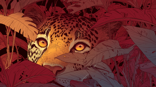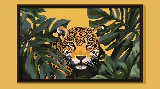 Visa fullständiga detaljerFototapet imitation painting | Majestätisk leopard omgiven av tropisk lövverk
