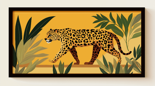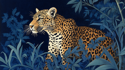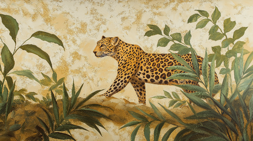 Visa fullständiga detaljerFototapet imitation painting | En majestätisk leopard som utvecklas i en stiliserad djungel
