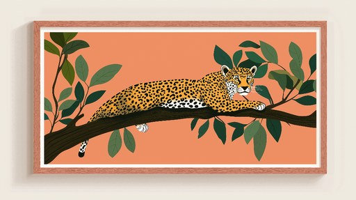 Visa fullständiga detaljerFototapet imitation painting | En majestätisk leopard som vilar på en gren med frodiga löv
