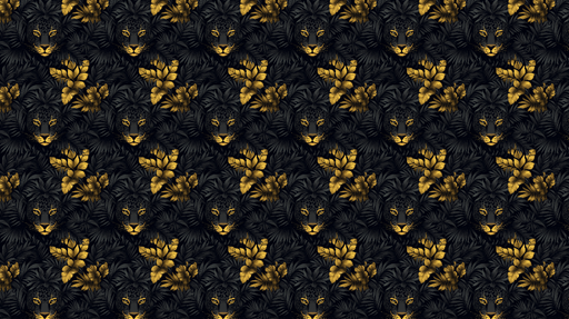 WonderMuralVår vackra Fototapet visar majestätiska leopardhuvuden, förstärkta av ett frodigt gyllene bladmönster på en intensiv svart bakgrund. De noggranna d...