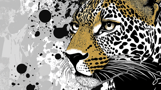 Visa fullständiga detaljerTapet leopard | Elegant porträtt av en leopard i guld och vitt