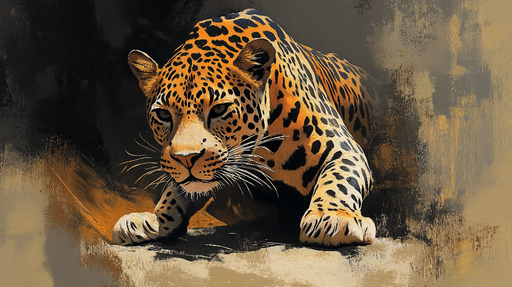Visa fullständiga detaljerTapet leopard | Illustration av en majestätisk leopard i varma toner