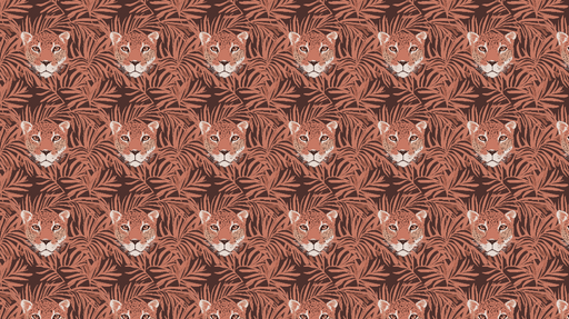 WonderMuralDenna tapet har en livlig design av stiliserade leoparder omgivna av frodig lövverk mot en varm terrakottabakgrund. Leopardhuvudena, med sina disti...