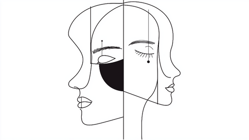 Polar LightIllustrationen visar ett feminint ansikte ritat med flytande och eleganta svarta linjer mot en vit bakgrund. Ritningens enkelhet framhäver de delik...