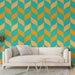 Lägg till en touch av vintage charm till ditt interiör med vår retro tapetmålning med levande geometriska mönster. De orange och turkosa färgerna flätas samman för att skapa en fängslande design, idealisk för ett samtida vardagsrum eller sovrum.