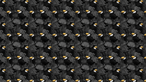 Visa fullständiga detaljerFototapet papegojor | Papegojmönster i svartvitt omgivet av löv
