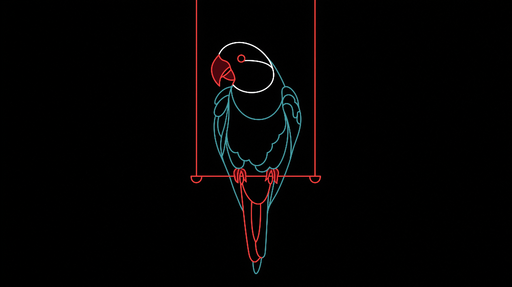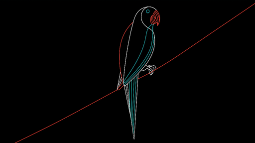 WonderMuralDenna tapet framhäver en stiliserad papegoja representerad med eleganta turkosa och röda konturlinjer mot en svart bakgrund. Denna moderna och mini...