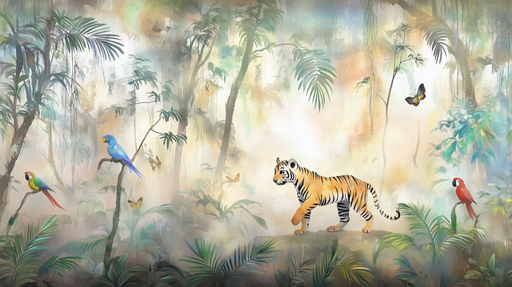MistyUpptäck denna djungeltapet som tar dig till hjärtat av en livlig djungel. Med sina majestätiska tigrar och färgglada papegojor för den här fängslan...