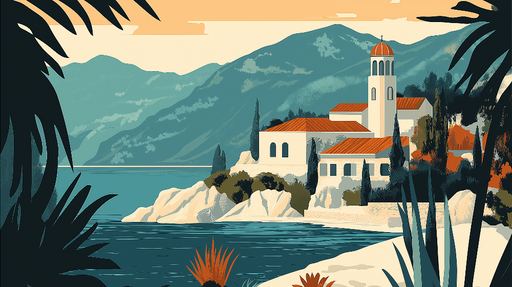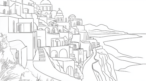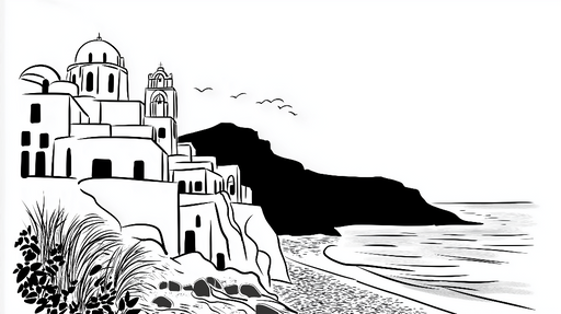 WonderMuralUpptäck vår fängslande tapet med en monokrom illustration av en medelhavskustlandskap. Detta konstverk för tankarna till charmen hos byar byggda på...