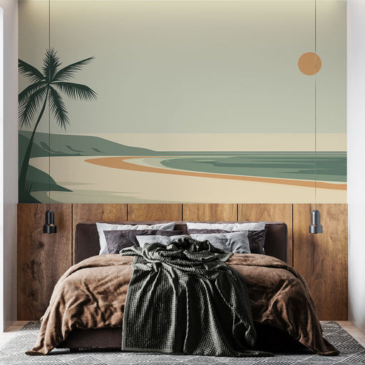 WonderMuralDenna fängslande tapet framhäver en illustrerad kustlandskap, blandar lugna nyanser av blått och beige för att framkalla strandens lugn. De delikat...