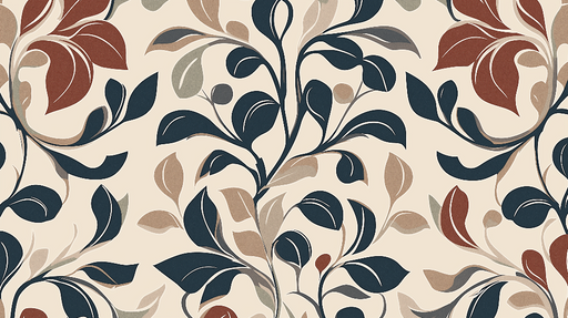 WonderMuralDenna shabby chic-tapet visar ett magnifikt mönster av stiliserade löv i rika nyanser av rött, blått och beige, på en mjuk och neutral bakgrund. De...