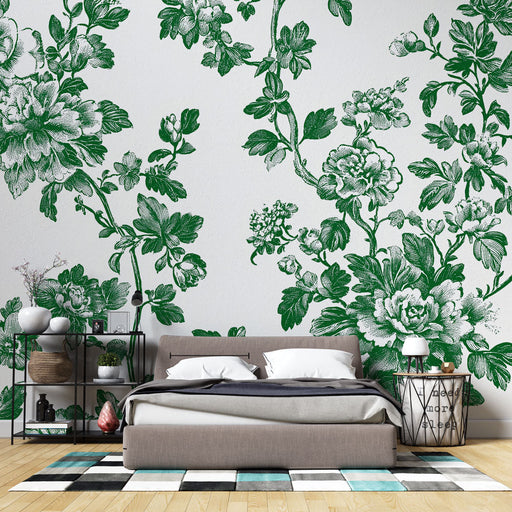 WonderMuralDenna shabby chic-tapet avslöjar ett magnifikt och delikat blommönster i grönt, smyckat med rosor och stiliserade blad, vilket för tankarna till en...