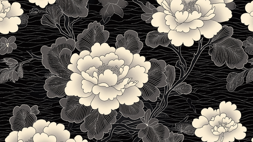 WonderMuralVår shabby chic tapetmålning har ett fantastiskt mönster av ljusa krämblommor på en djup svart bakgrund, vilket skapar en fängslande kontrast. De d...