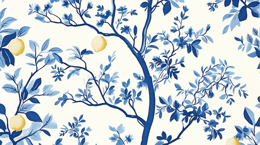 Visa fullständiga detaljerTapet shabby chic | Citrusmönster i blått och gult