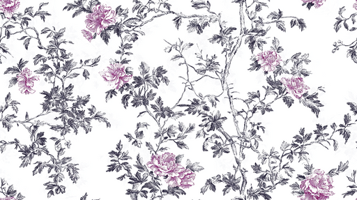 WonderMuralDenna shabby chic tapet avslöjar ett magnifikt blommönster där lila rosor blommar bland detaljerade bladverk. Kontrasten mellan de mörka nyanserna ...