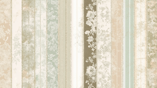 WonderMuralDenna shabby chic-tapet avslöjar ett elegant mönster av ränder i mjuka nyanser av pastellgrön, beige och vitt, smyckad med delikata blommor. De någ...