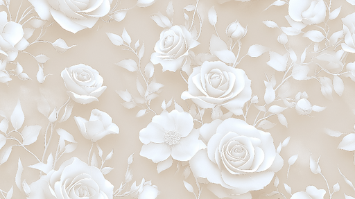 WonderMuralDenna shabby chic tapet erbjuder ett magnifikt mönster av vita rosor på en mjuk beige bakgrund, vilket skapar en lugn och raffinerad atmosfär. Blom...