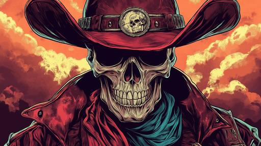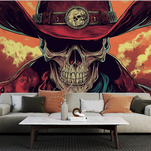 WonderMuralVår fototapet har en cowboyskalle i en livfull grafisk stil, som blandar röda och blå färger för att skapa en slående kontrast. Denna fängslande de...