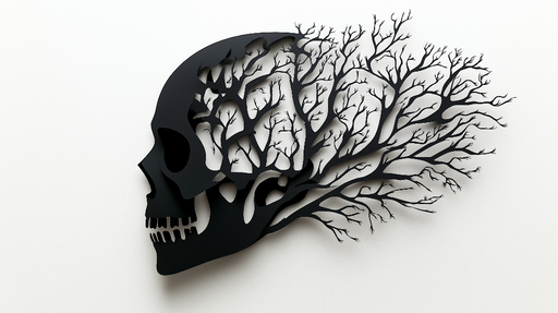 Visa fullständiga detaljerTapet skull and trees | Konstnärlig silhuett av en skalle som smälter samman med grenar
