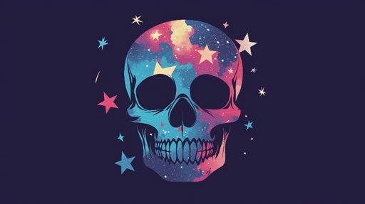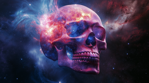 WonderMuralKosmos och Skalle Denna djärva illustration förenar bilden av en realistisk skalle med den enorma färgglada nebulosan, vilket skapar en slående vis...