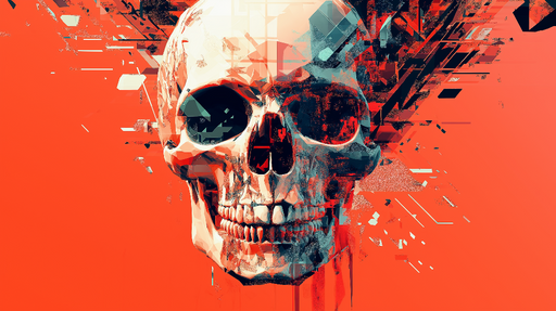 WonderMuralExplosivt kranium i rött Denna djärva tapetmålning visar ett människokranium som är uppdelat i dynamiska fragment på en ljusröd bakgrund. Skärvorna...