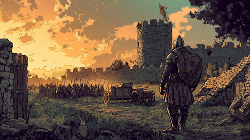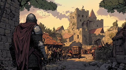 Art'loloOmvandla ditt utrymme med vår medeltida tapetmålning med en riddare i rustning framför ett pittoreskt slott. Denna historiska dekor väcker minnet a...